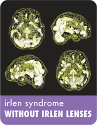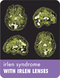 These three-dimensional scans using SPECT technology show the portions of the brain that are in heavy use, or "hot". Both scans are of the same brain with, and then without Irlen filters. In the scan at the right, there are many parts of the brain that are "hot". Many more than in the case of a "normal" brain. The scan to the left, shows that the brain is normalized once the Irlen filters are used